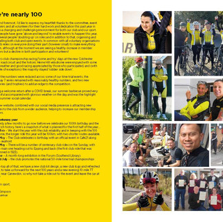 2023 is our centenary year, a year where you will be able to see an exhibition about the club (venue: The Forum – June), and a year when the club will promoting National Cycling Time Trials Council, 50-mile time trial (July), plus lots more...